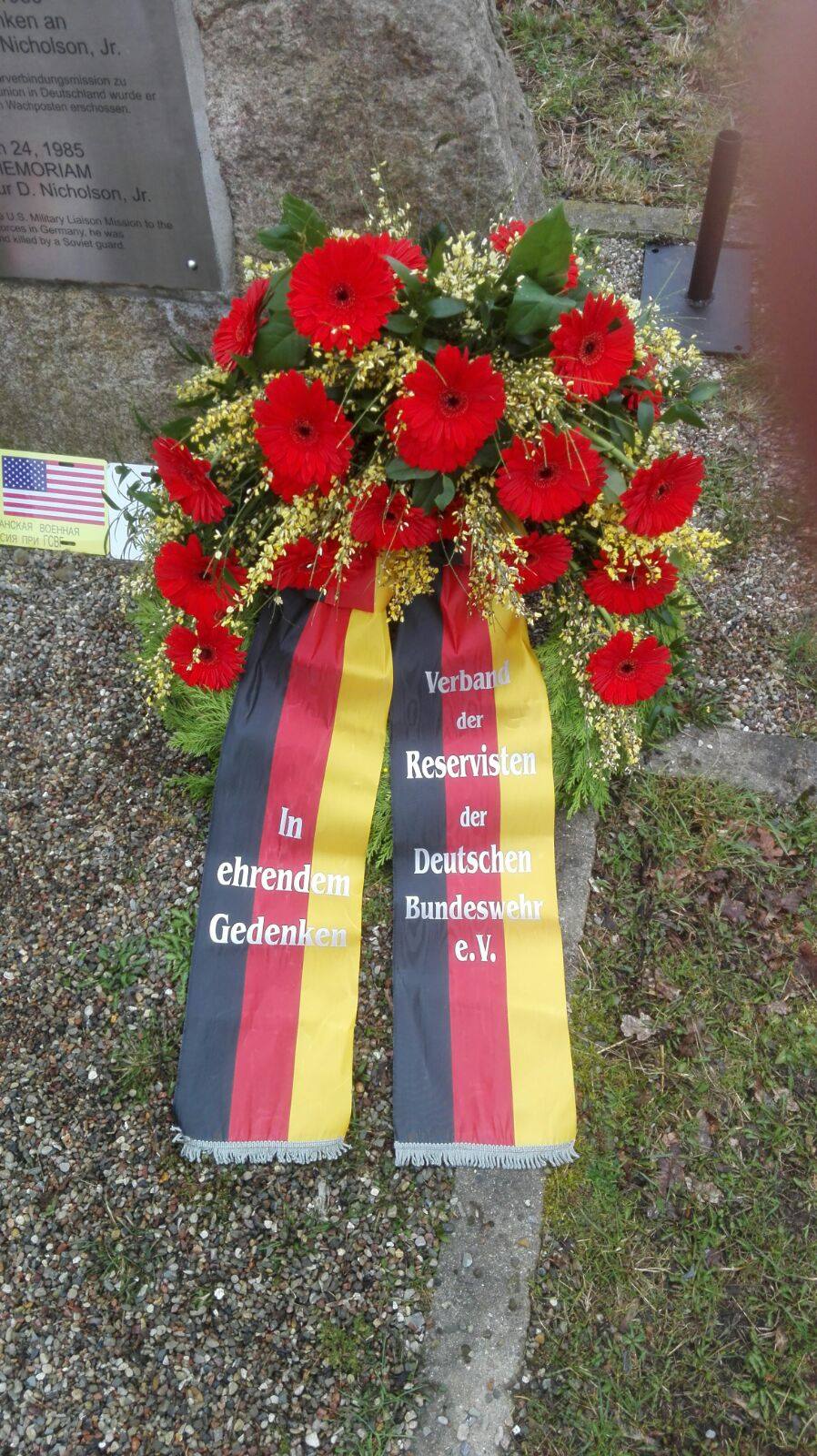 On Saturday, March 18th many of our friends including USMLM member Thomas Antonio Favia attended a wreath laying ceremony for two of our fallen comrades, USMLM Officer Major Arthur “Nick” Nicholson and FMLM Officer Philippe Mariotti near Schwerin (Ludwigslust) Germany.
