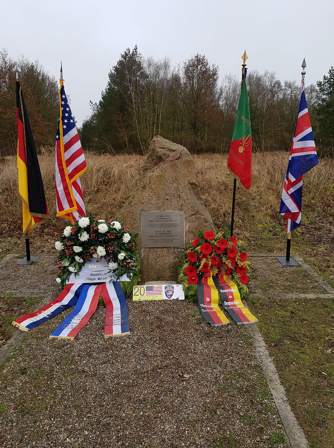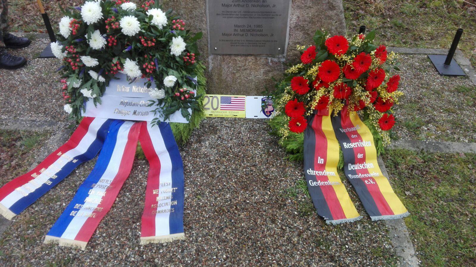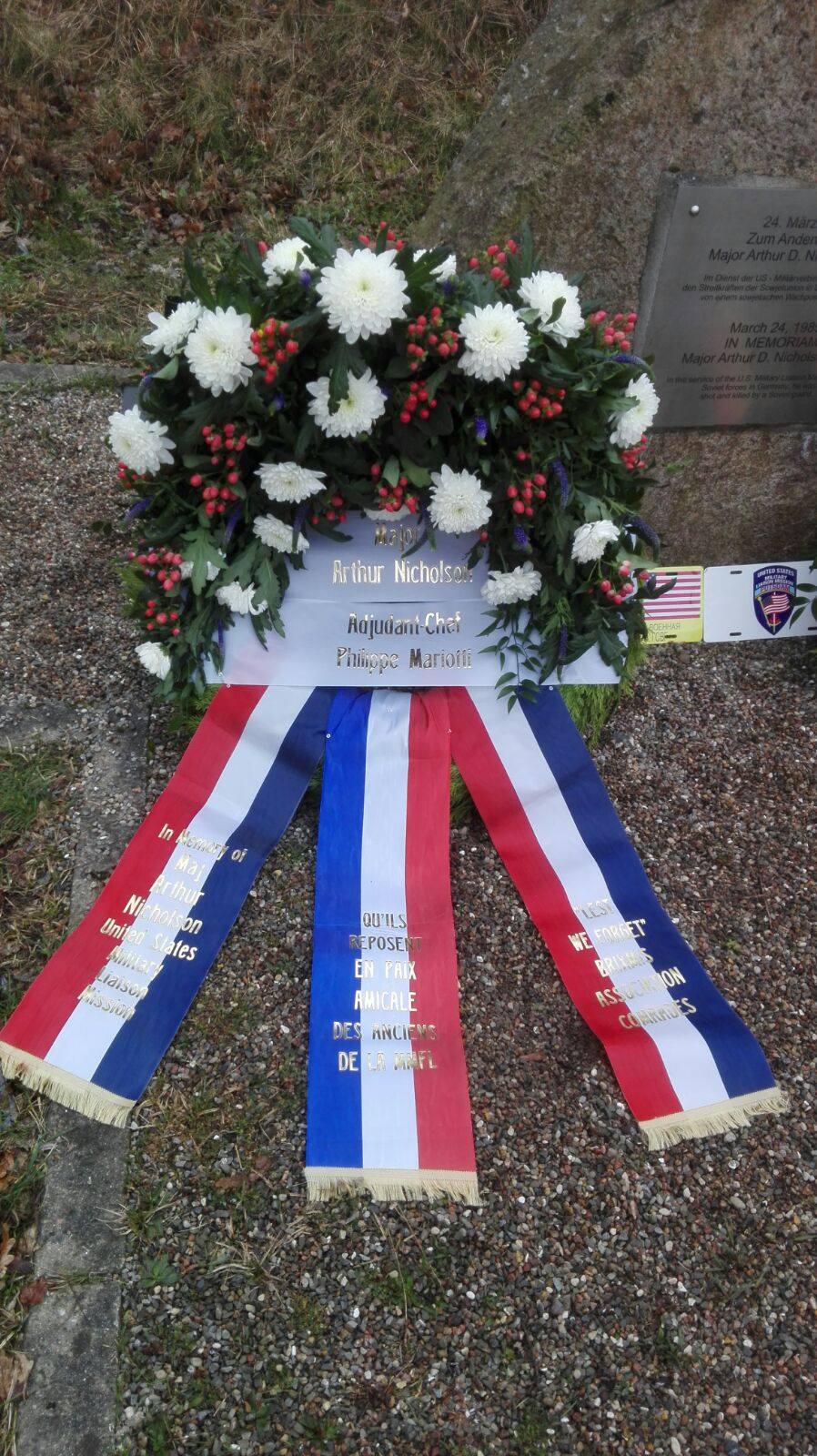 On Saturday, March 18th many of our friends including USMLM member Thomas Antonio Favia attended a wreath laying ceremony for two of our fallen comrades, USMLM Officer Major Arthur “Nick” Nicholson and FMLM Officer Philippe Mariotti near Schwerin (Ludwigslust) Germany.